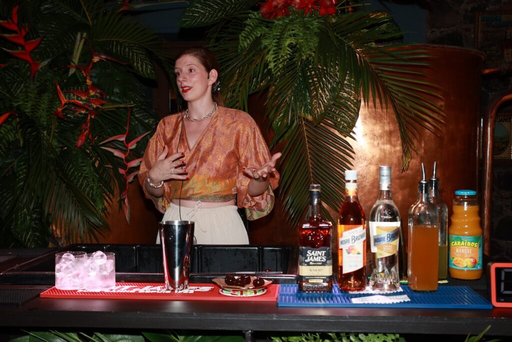 Pour célébrer dignement les 10 ans de The Bartenders Society, la finale internationale 2025 a vu les choses en grand. Le 30 juin, les 14 finalistes internationaux, venus des quatre coins du monde, ont rejoint la Martinique, terre emblématique du rhum agricole, pour vivre une aventure spéciale. À leurs côtés, 7 membres du jury, présidés par Matthias Giroud, tous experts reconnus de la scène cocktail mondiale, ont pris part à cette édition anniversaire. L’ouverture officielle de la finale s’est tenue le soir-même lors d’une soirée conviviale et inspirante. Deux femmes de talent ont animé une masterclass autour des liqueurs Marie Brizard : Nathalie Hobe, ambassadrice de la marque, et Kate Boushel, bartender primée avec plus de 15 ans d’expérience à l’international. Cette première soirée fut également l’occasion pour les participants de rencontrer un chef martiniquais qui leur a présenté une sélection d’ingrédients locaux, qu’ils devaient utiliser le lendemain dans une épreuve autour des cocktails sans alcool. Pour clôturer cette belle soirée d’ouverture, nous avons célébré ensemble le 270ème anniversaire de la maison Marie Brizard autour d’un gâteau d’anniversaire partagé dans la convivialité, symbole d’un héritage précieux et toujours vivant.